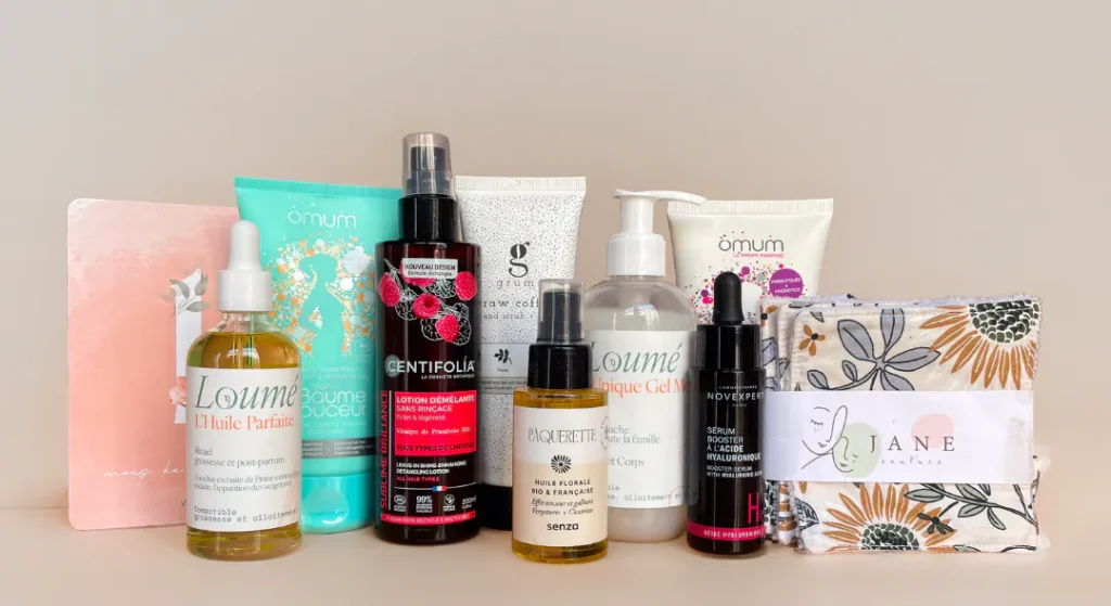 Nos box grossesse vous proposent des produits cosmétiques naturels, sans produits toxiques, sans perturbateurs endocriniens, et sans huiles essentielles.